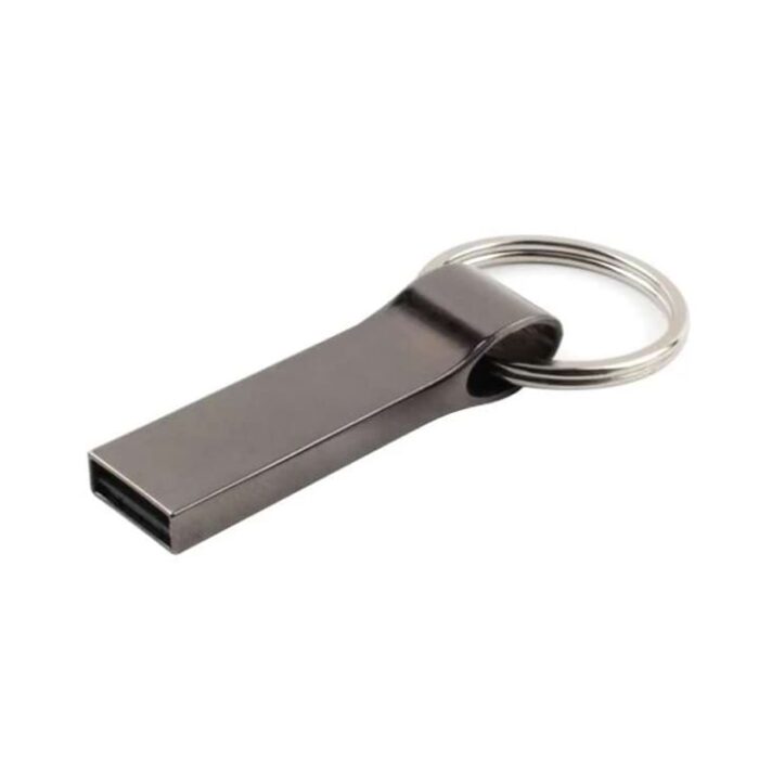 Key Ring USB with gunmetal stainless steel body, 45×12×10 mm, 0.010 kg, customizable laser-engraved branding, capacity 4–64 GB.